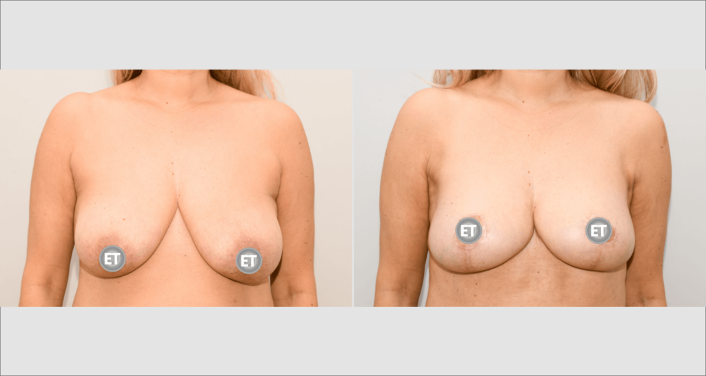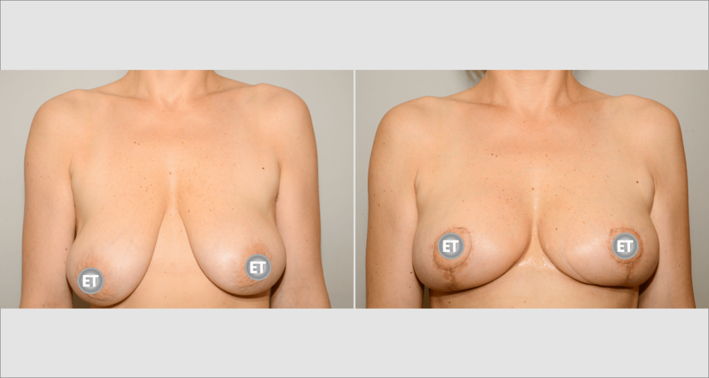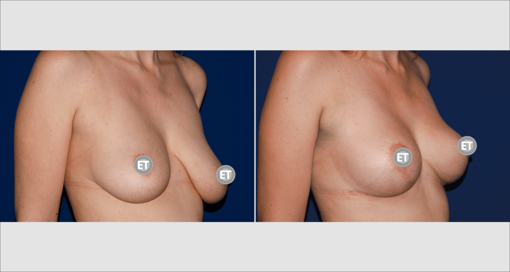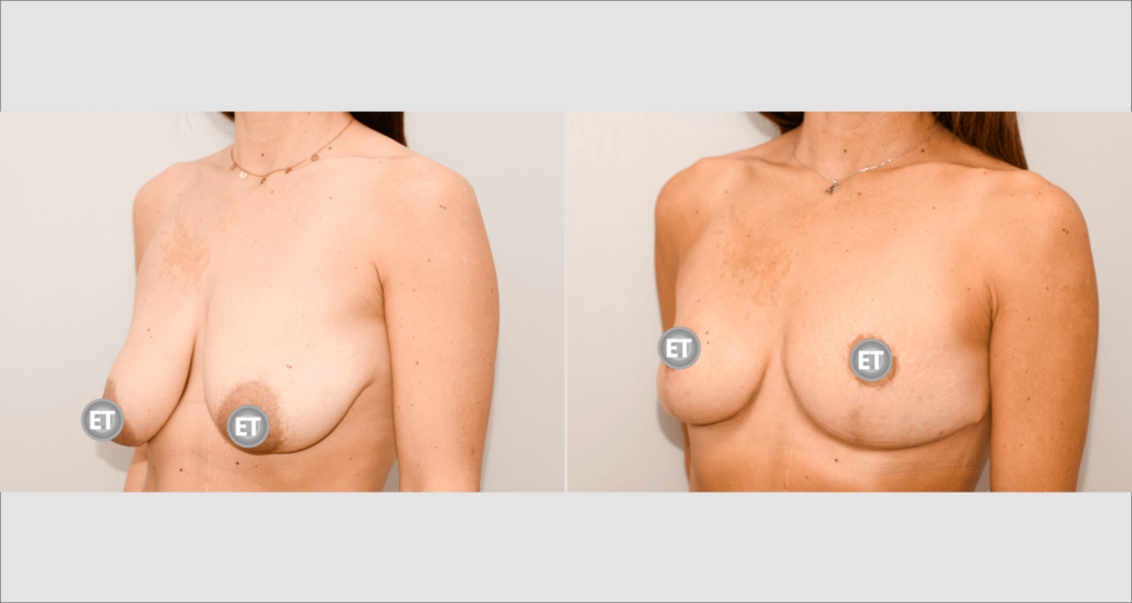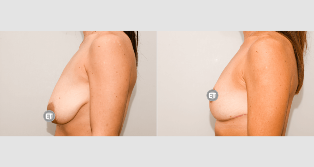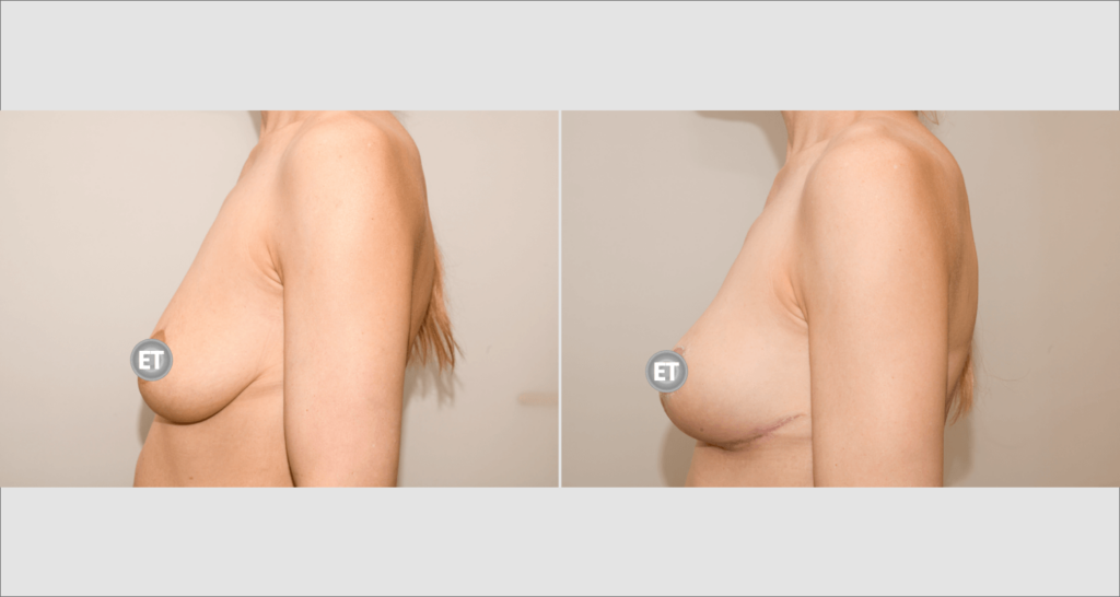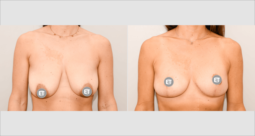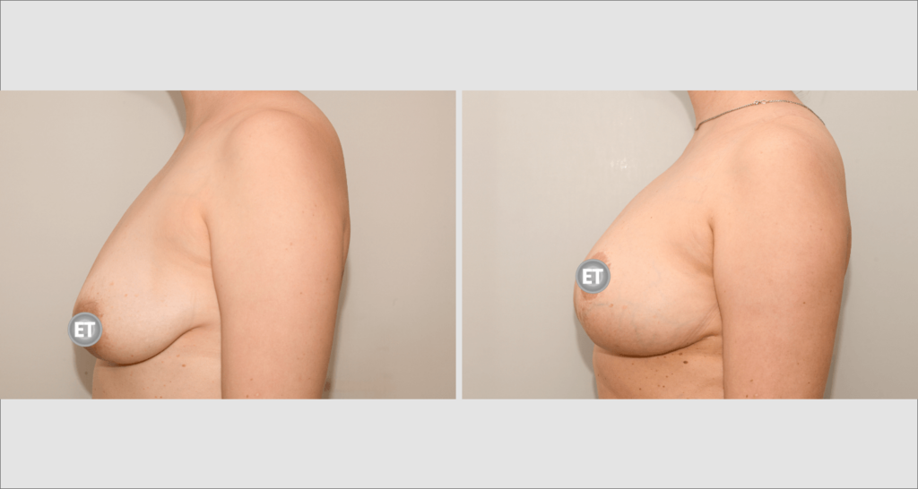 Our before-and-after photos show impressive results following breast lifts – with or without volume changes. Whether due to age-related tissue sagging, changes after pregnancy, or weight loss, the goal is a naturally shaped, firm breast that complements your body. These procedures require extensive experience and a refined aesthetic sense to achieve a harmonious and feminine result. We always strive to use scar-sparing techniques and preferably create an internal bra to ensure lasting results.