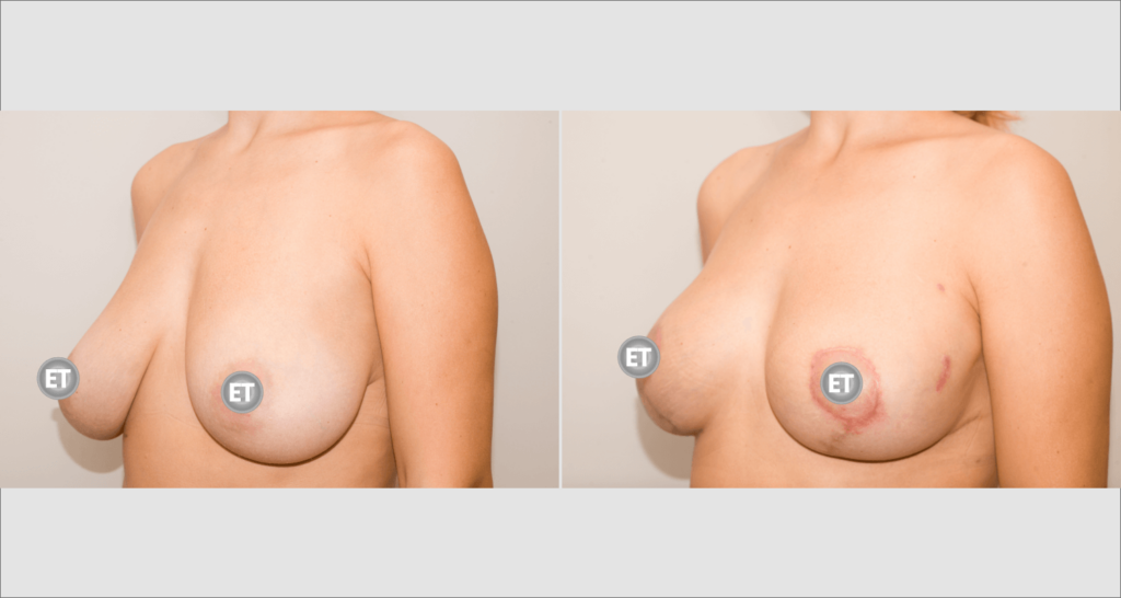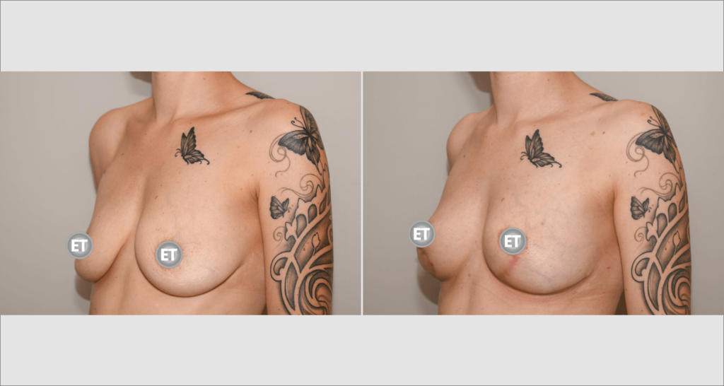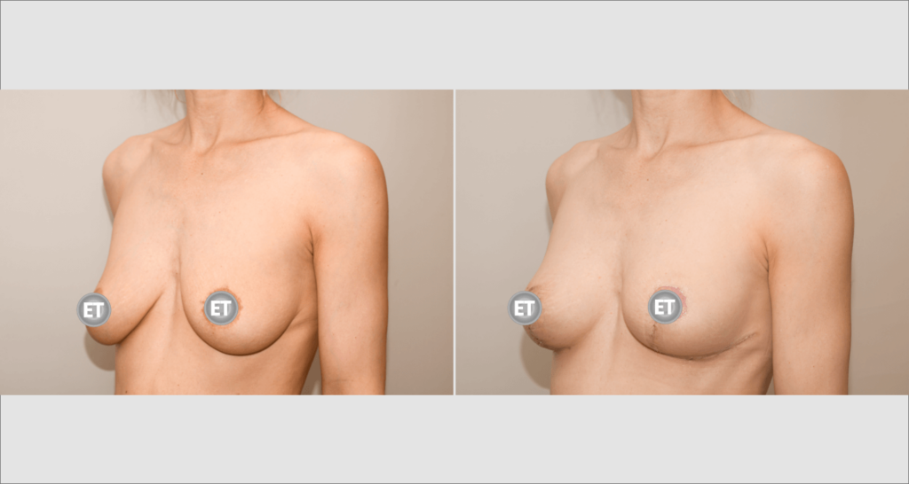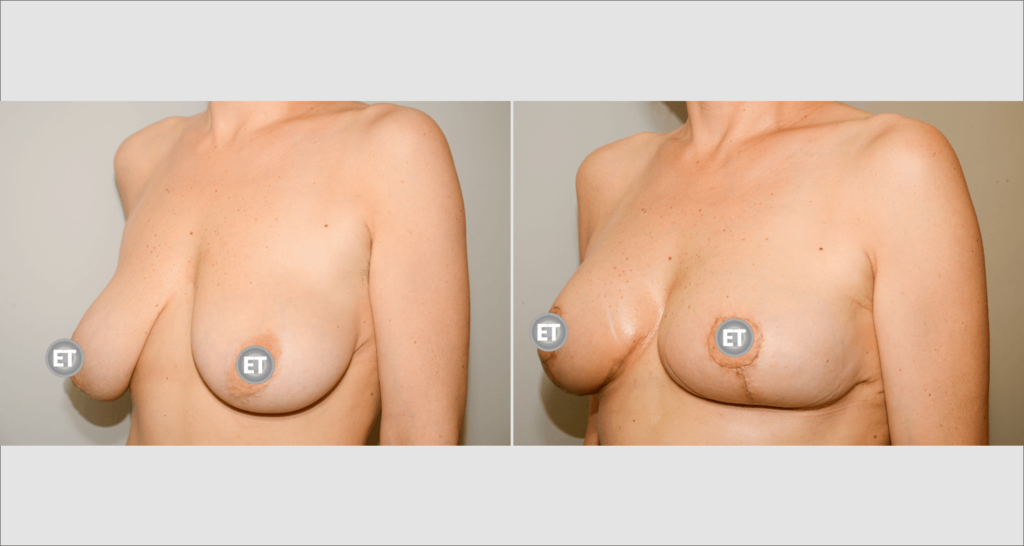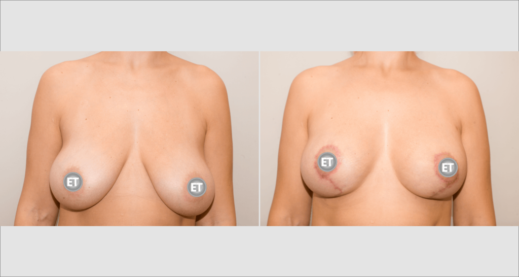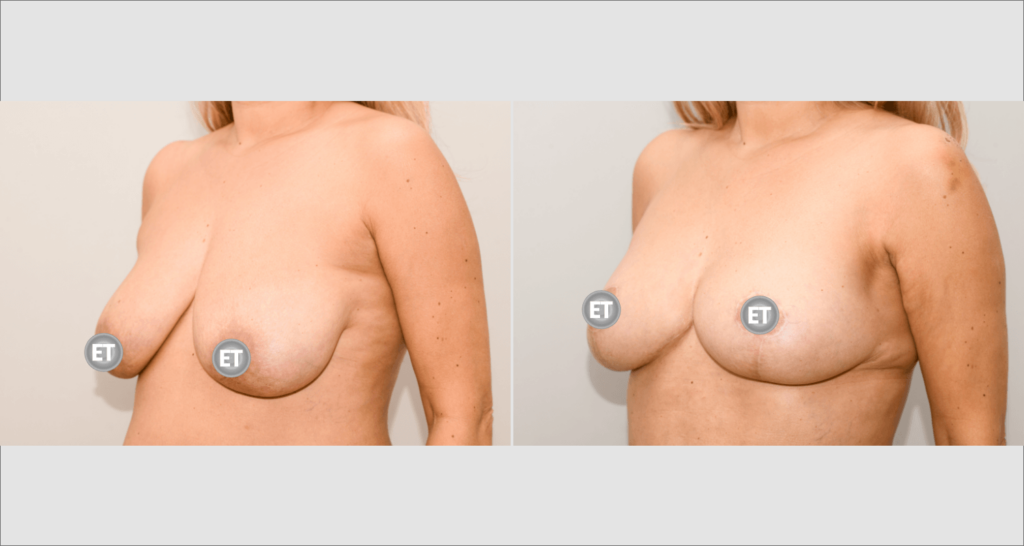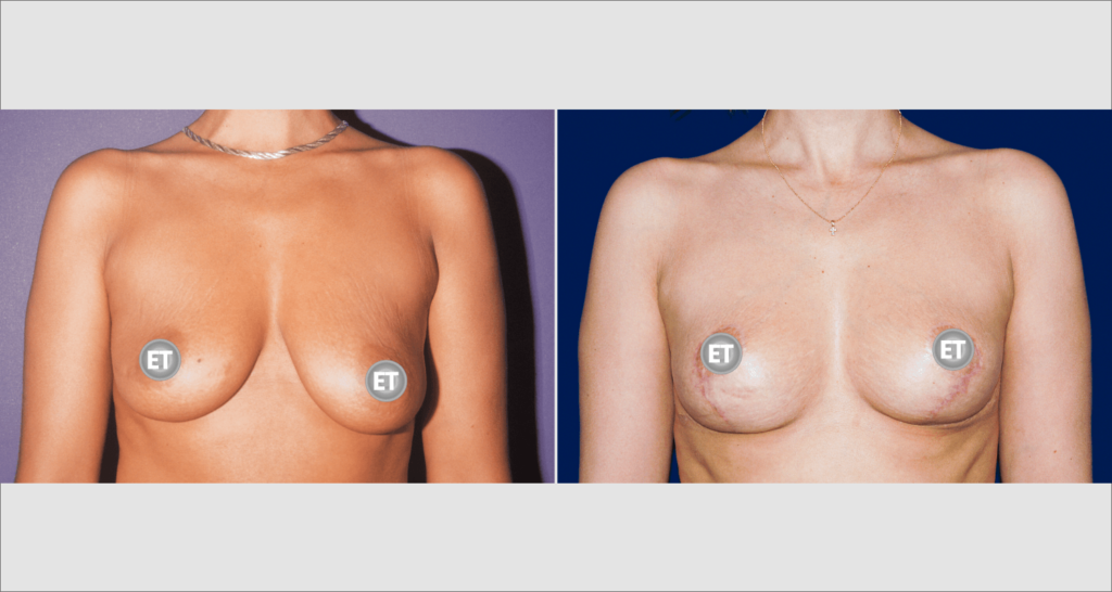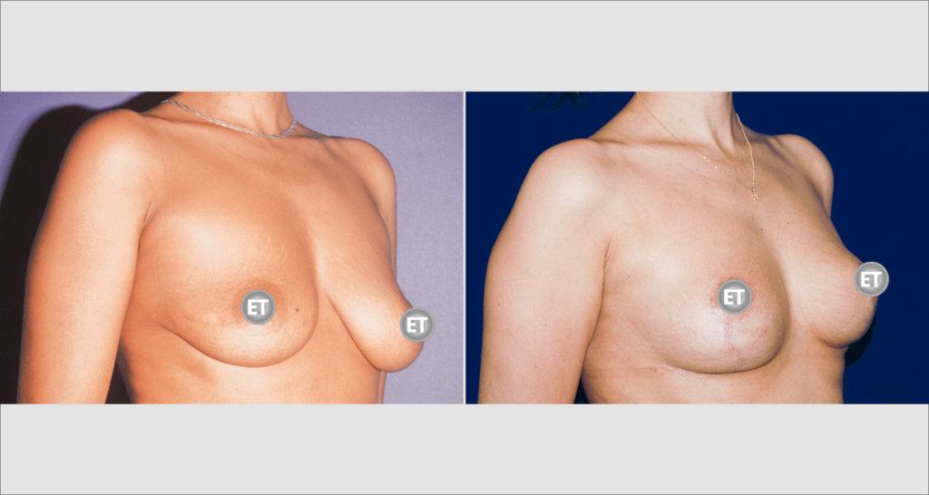 Our before-and-after photos show impressive results following breast lifts – with or without volume changes. Whether due to age-related tissue sagging, changes after pregnancy, or weight loss, the goal is a naturally shaped, firm breast that complements your body. These procedures require extensive experience and a refined aesthetic sense to achieve a harmonious and feminine result. We always strive to use scar-sparing techniques and preferably create an internal bra to ensure lasting results.