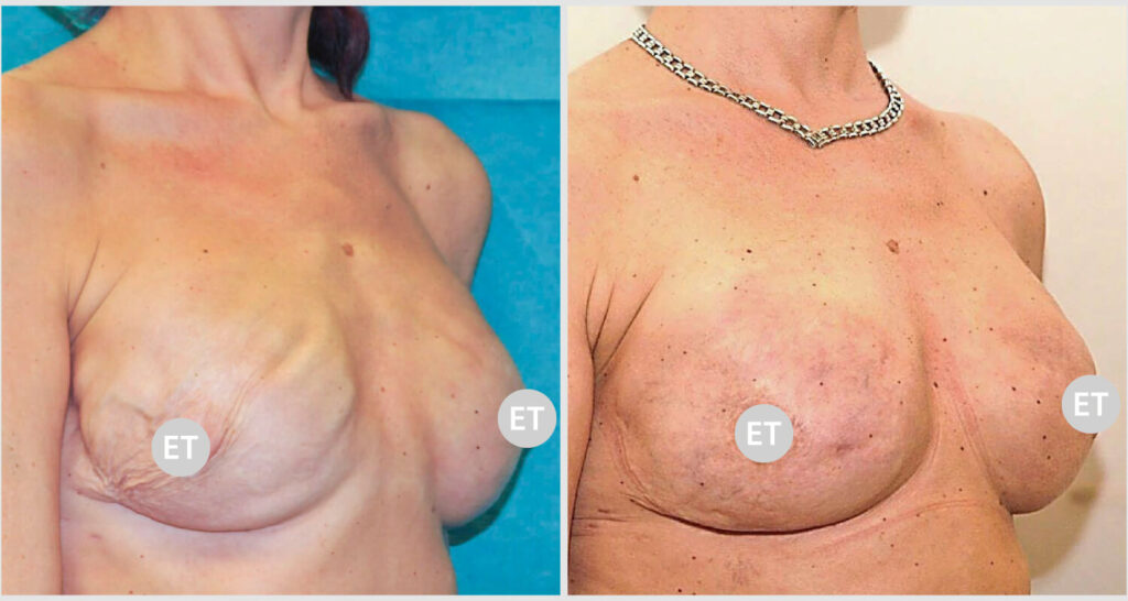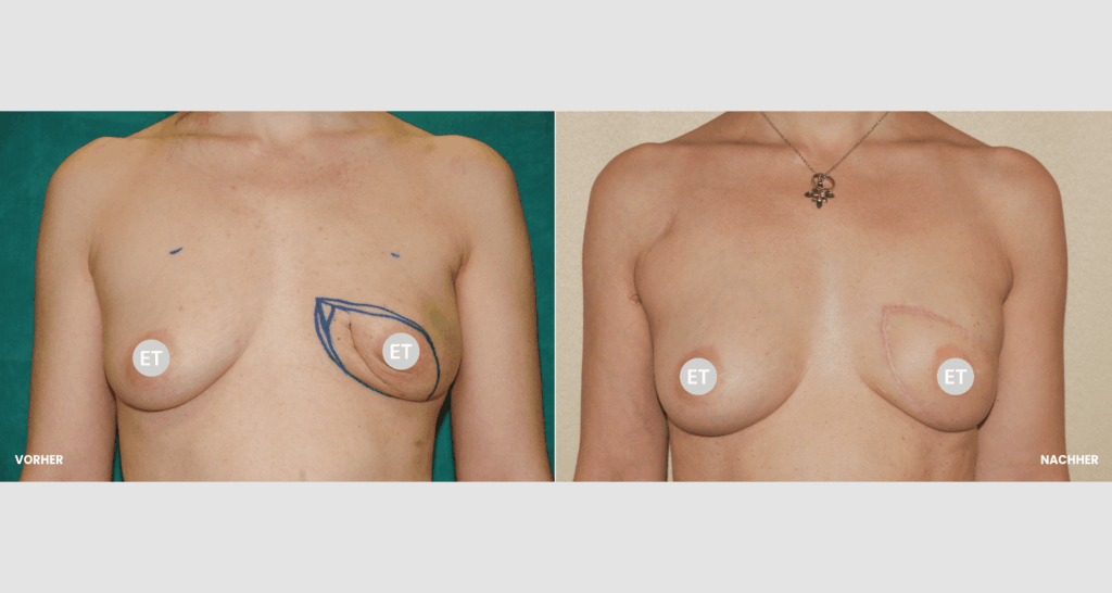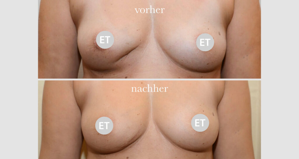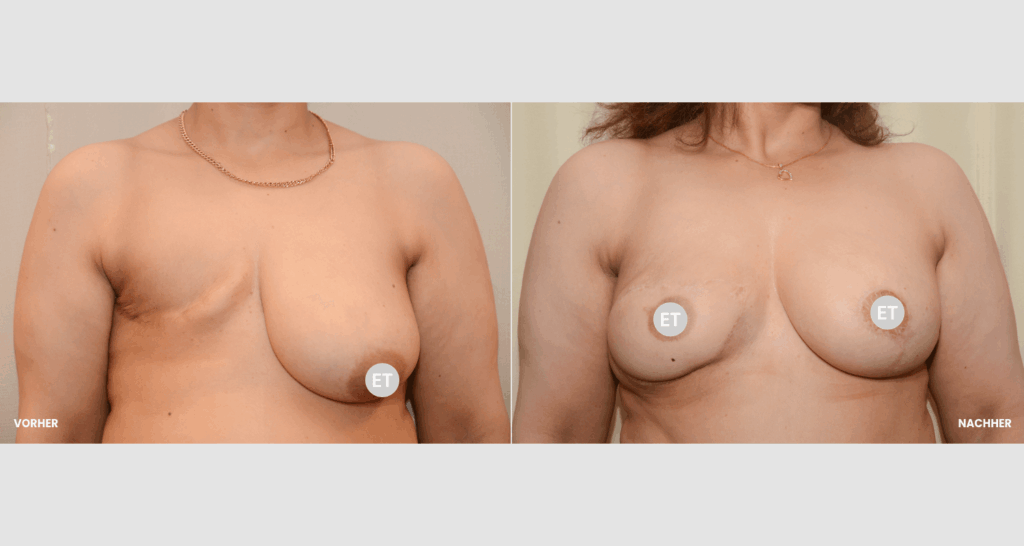 Our before-and-after pictures show sensitive and precise reconstructions after breast surgeries – for example, after tumor removal or mastectomy. Whether with implants, autologous tissue, or a combination of both, the goal is always a harmonious, natural breast shape that matches your body image. Breast reconstruction is very important.