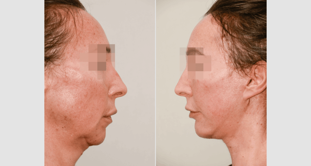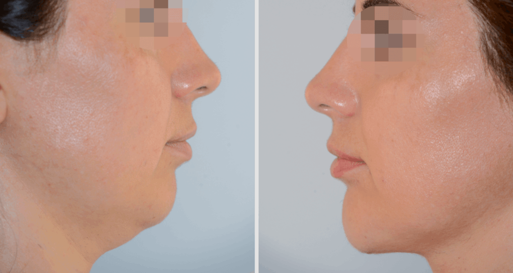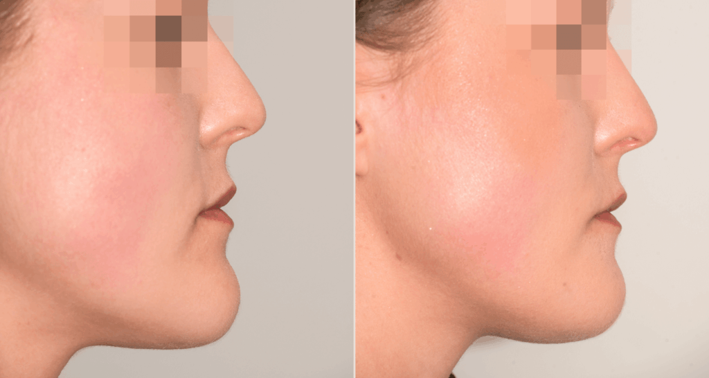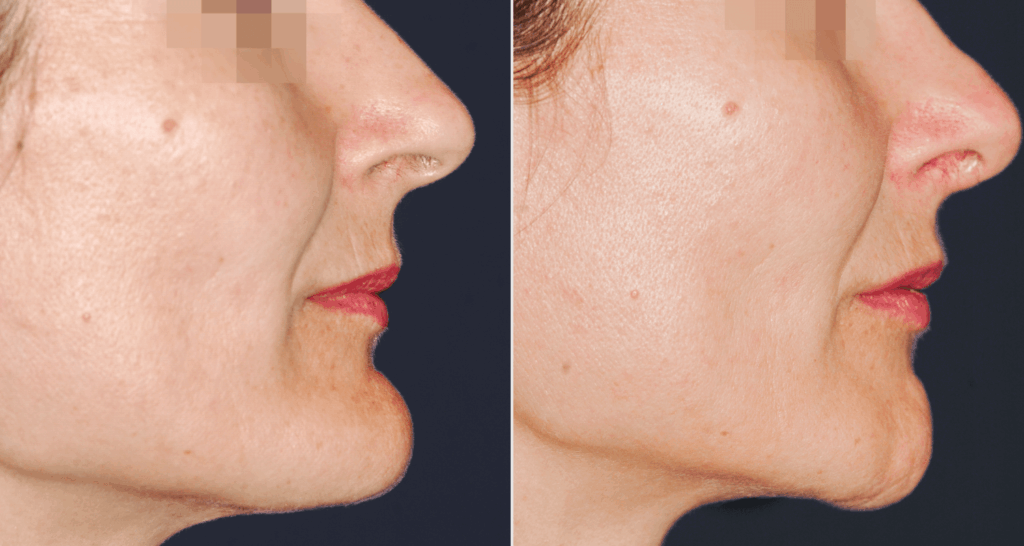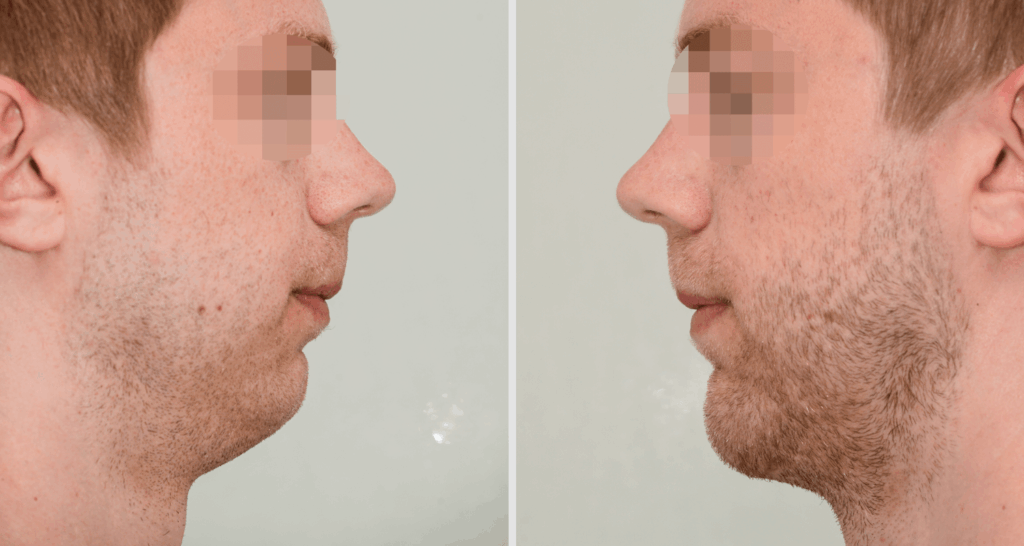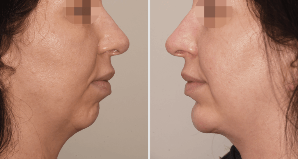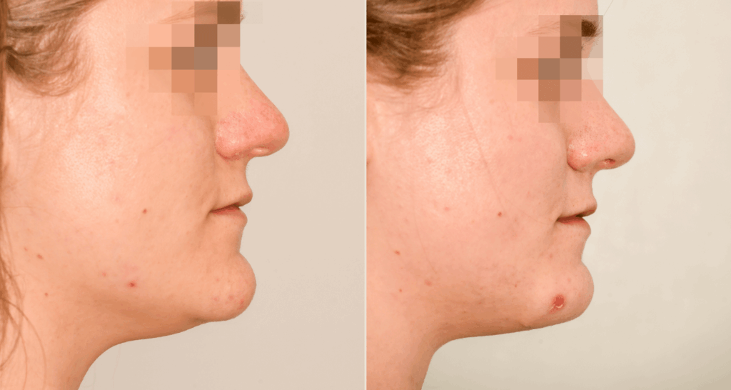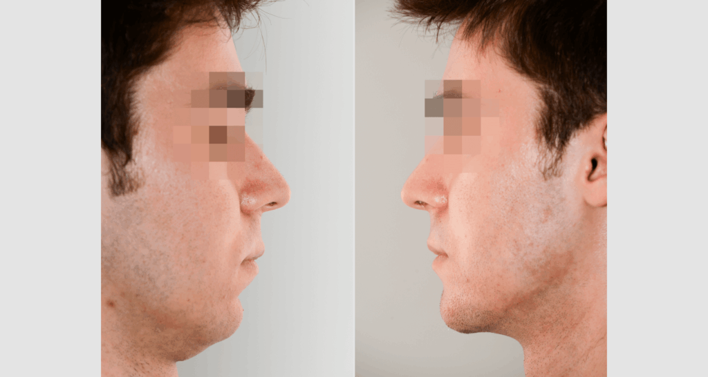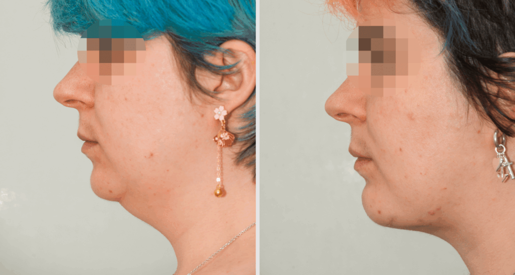 Our before-and-after photos show partially complex chin corrections — from simple augmentations with implants or chin reductions through bone contouring to complementary procedures such as platysma tightening and fat removal to simultaneously correct a double chin. These procedures require extensive experience, as the chin plays a decisive role in facial harmony. The goal is always to achieve a balanced, naturally appearing profile and aesthetically harmonious facial proportions.