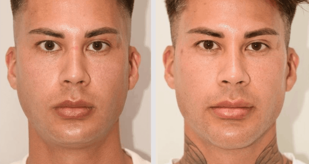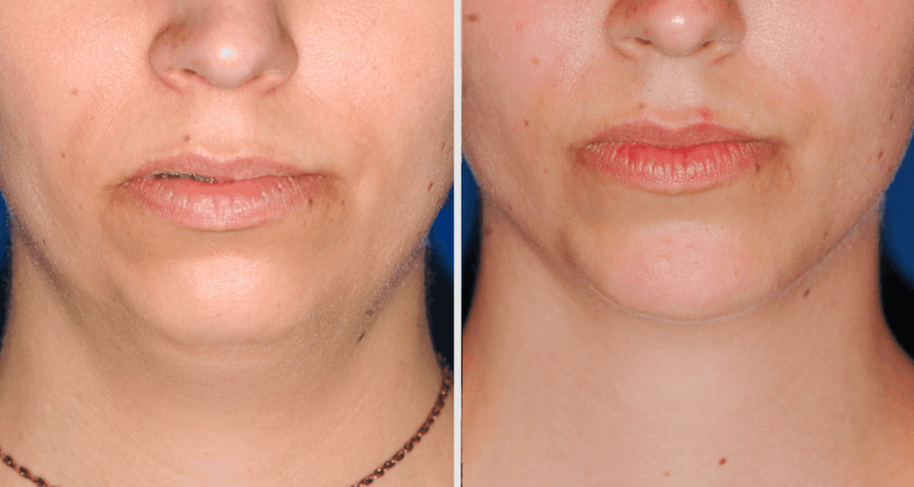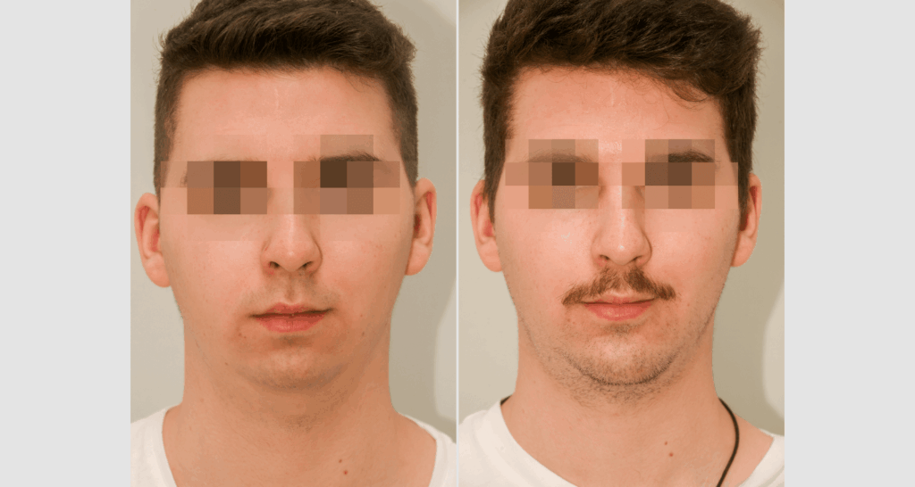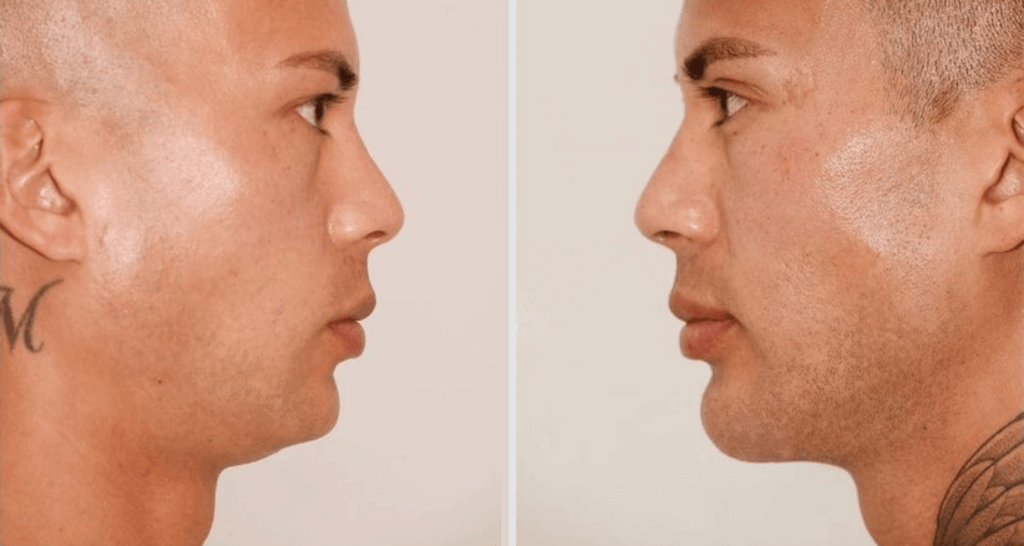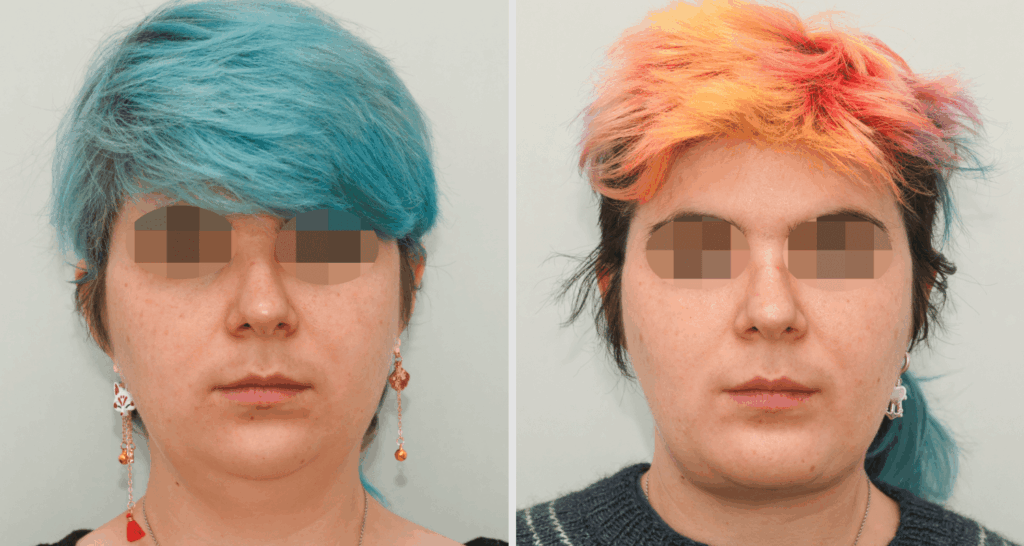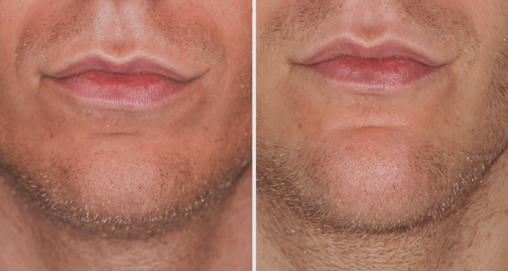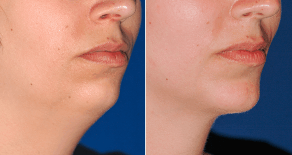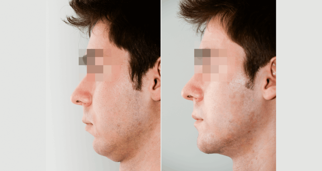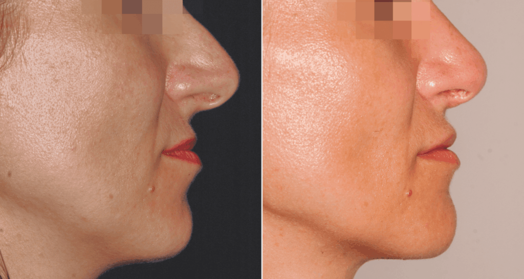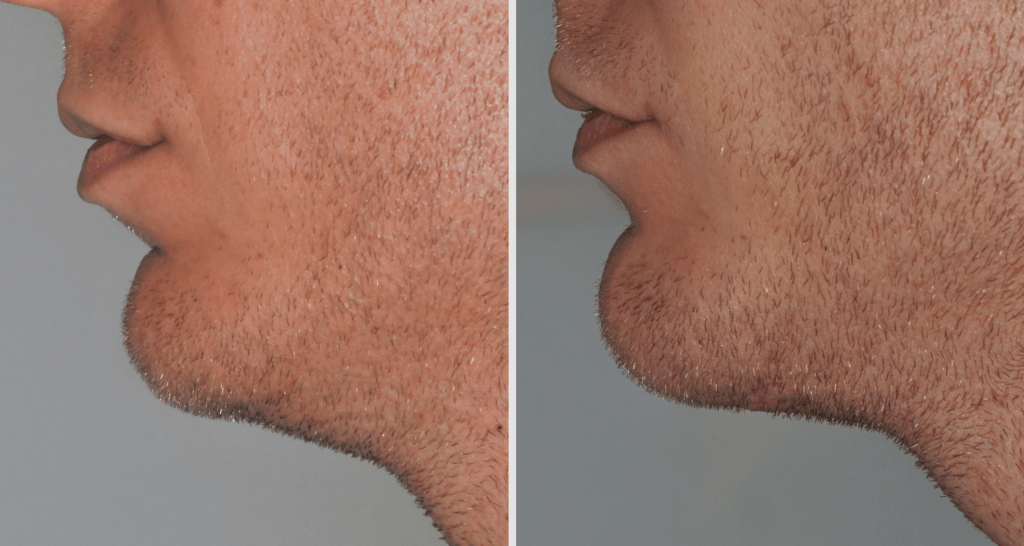 Our before-and-after photos show partially complex chin corrections — from simple augmentations with implants or chin reductions through bone contouring to complementary procedures such as platysma tightening and fat removal to simultaneously correct a double chin. These procedures require extensive experience, as the chin plays a decisive role in facial harmony. The goal is always to achieve a balanced, naturally appearing profile and aesthetically harmonious facial proportions.