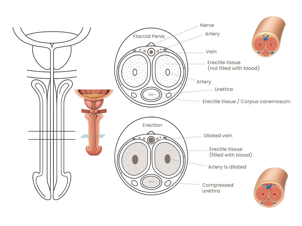In order for as many fat cells as possible to receive blood supply quickly in their new environment, a number of measures and technical details must be followed. Among other things, the fat must be injected in such a way that all fat cells are surrounded by recipient tissue, allowing the integration process (blood supply) to begin simultaneously for all of them. In addition, no pressure should be applied to the fat cells, as pressure inhibits the healing process. Therefore, the fat is not simply poured into a preformed cavity as with a silicone implant, but instead injected in numerous thin “spaghetti-like” strands and multiple layers, so that the penis remains soft and flexible.