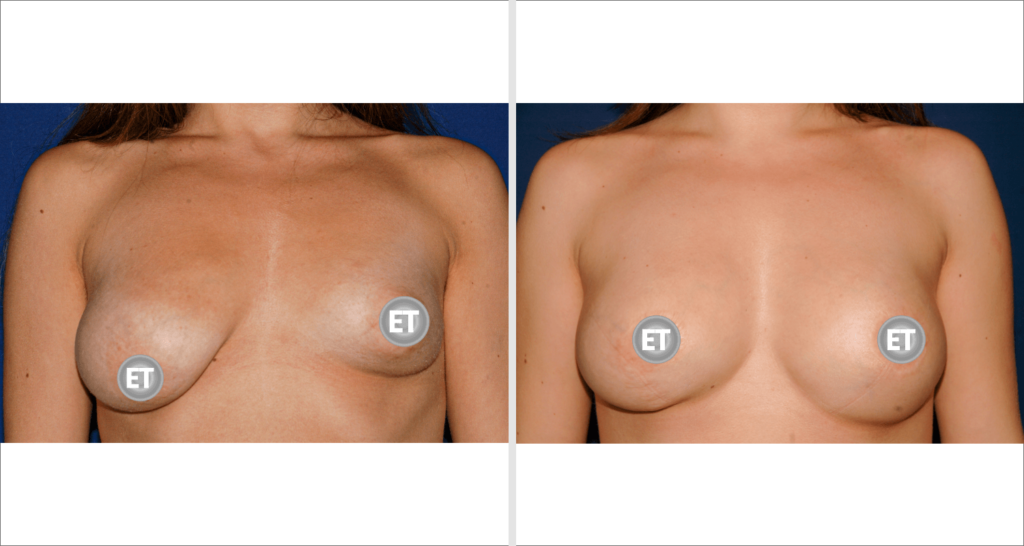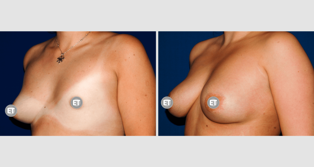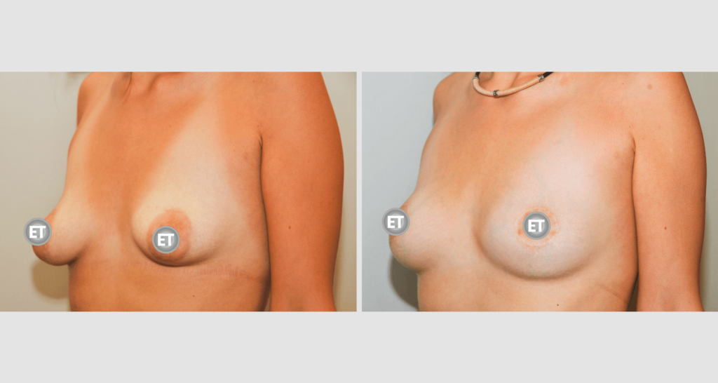 Our before-and-after images show corrections of tuberous breast deformity – a congenital malformation that affects both the shape and volume of the breast. Through precise restructuring of the glandular tissue, reduction of the almost always enlarged areola, and, if necessary, the insertion of implants and/or autologous fat, a natural, symmetrical, and harmonious breast shape can be achieved. These complex procedures require extensive surgical expertise to ensure aesthetically pleasing and lasting results.